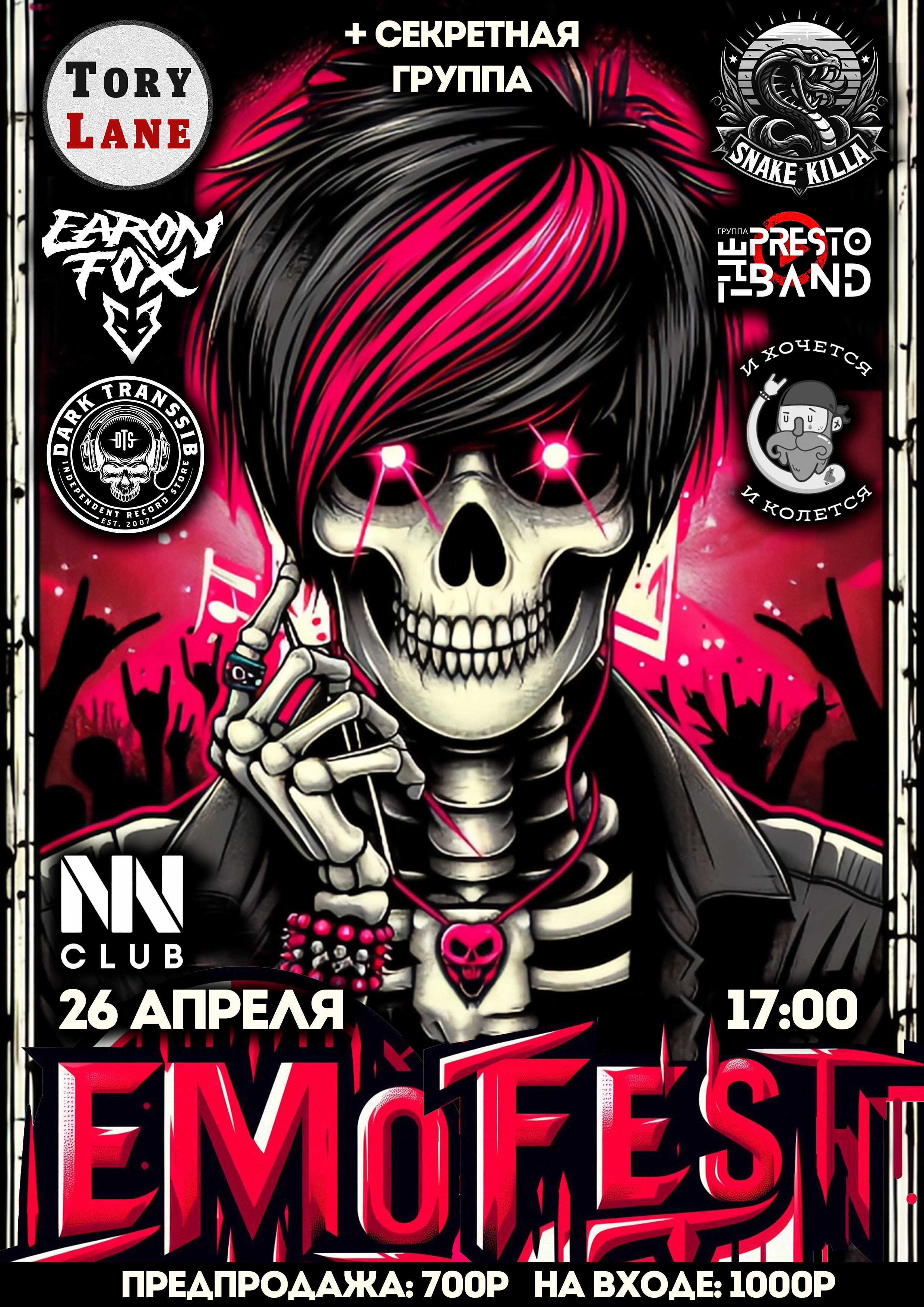 Здесь соберутся неравнодушные сердца, чтобы через музыку выразить все спектры чувств — от меланхолии до бешеной энергии. Чёрно-розовые акценты, яркие образы, и музыка, которая трогает душу. Эмофест 2025 — это место для тех, кто живет чувствами, кто находит утешение в аккордах и стихах. Присоединяйся!